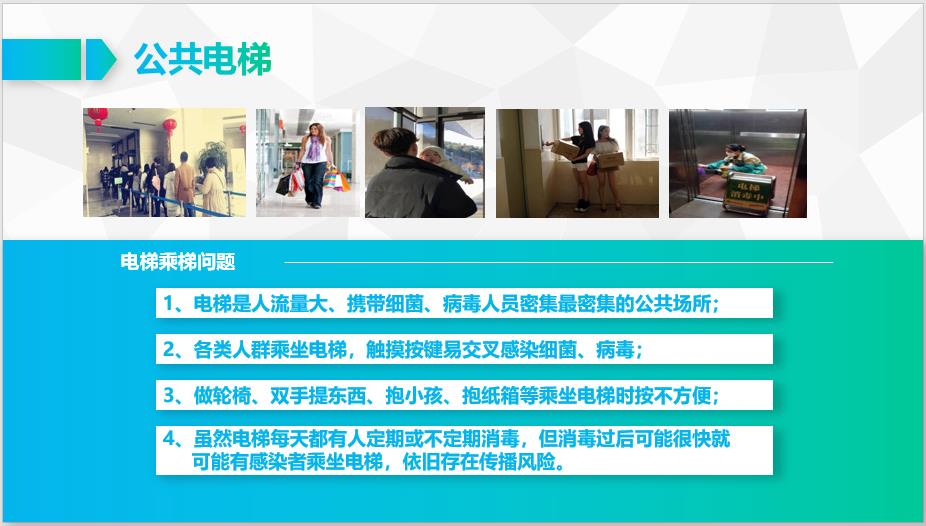 (1)電梯是人流量大、攜帶細菌、病毒人員密集最密集的公共場所;