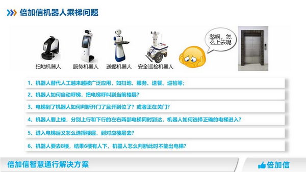 在高層建筑或大型商場等場所,電梯的使用效率對于整個建筑物的運營效率具有重要的影響。機器人倍加信梯控的作用,正是為了提高電梯的使用效率,進而提高整個建筑物的運營效率。