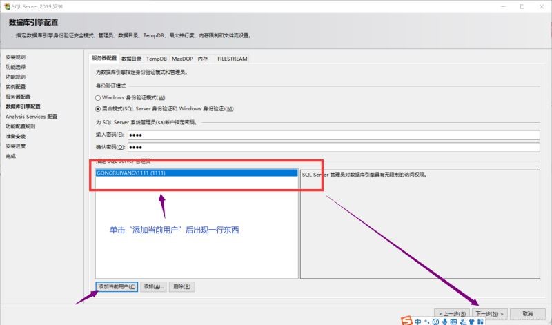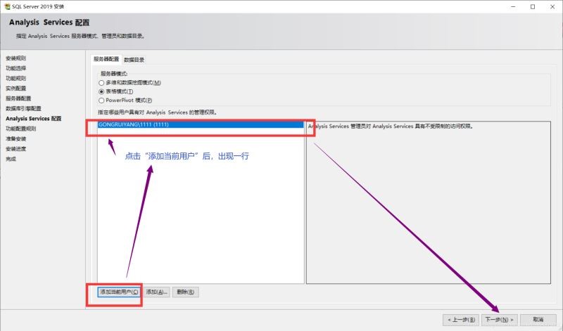 點擊添加當前用戶,再單擊下一步