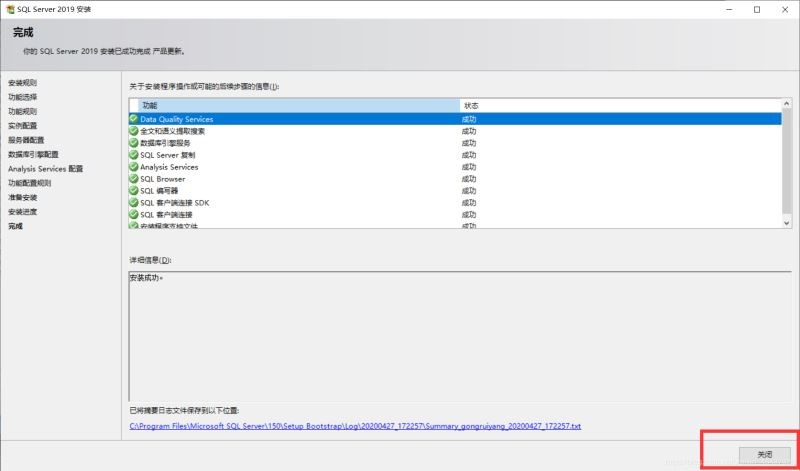 至此SQL Server 2019 安裝完成。